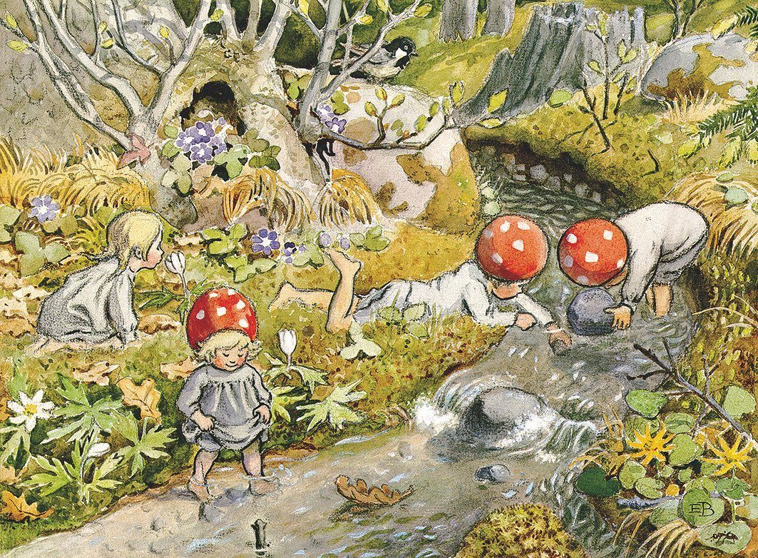 First published in Swedish under the title Tomtebobarnen in 1910 and in English in 1982, Children of the Forest follows the enviable escapades of four mushroom-hatted siblings gamboling through the seasons.