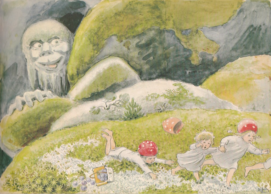 When they’re not wondering where to bury a snake, nursing ant bites or being scolded for not paying attention, the children ride bats, play games with elusive, ‘light as thistledown’ forest fairies, and harvest berries to store for winter, encountering a forest troll when they do because, well, this is Sweden, after all.