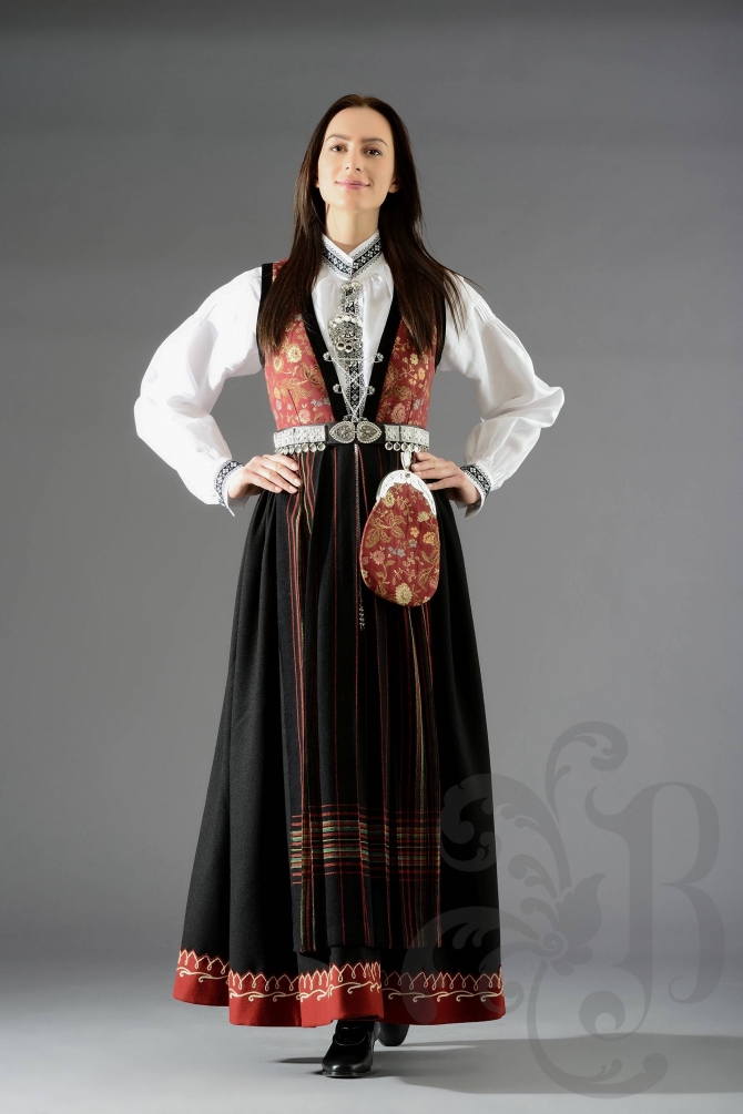 The Hardangerbunad is known as the ‘first bunad,’ and is renowned for its red body and white apron. It became known as ‘the national’ in 1905 and spread throughout the country. It was commonly used to represent Norway, but recently the East-Telemarkbunad has taken its place. Many people say Telemark has the most ‘Norwegianest’ bunads.